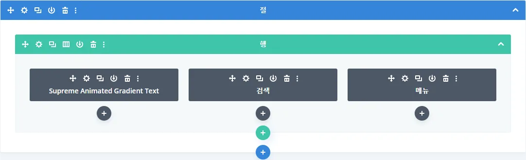 테마 빌더 화면의 아래에는 여러가지 버튼 아이콘이 있습니다.