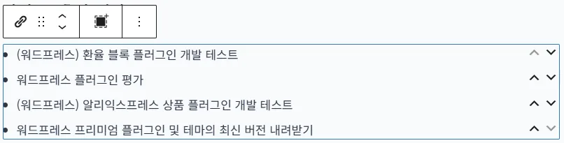 이런식으로 나타나며 글을 검색 후 선택하면 목록으로 삽입됩니다.