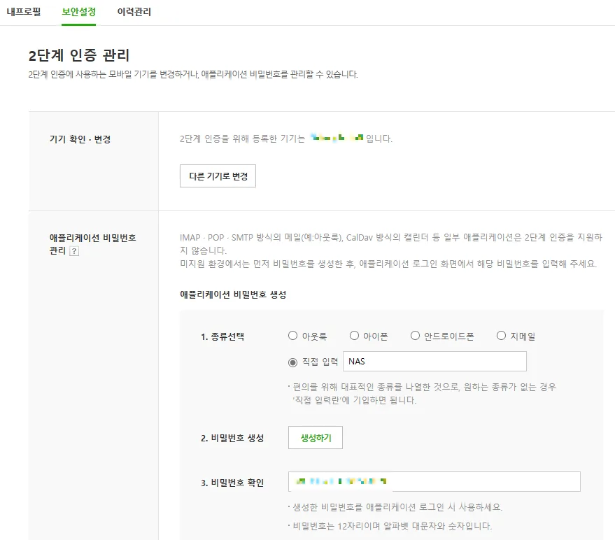네이버 계정의 보안 설정에서