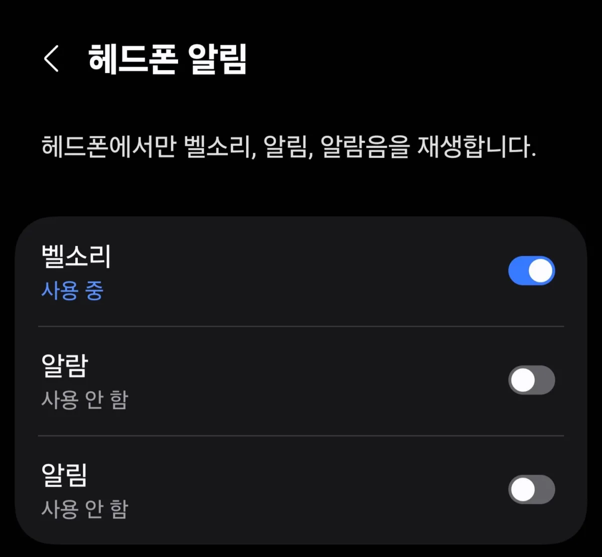 헤드폰 알림을 메뉴를 선택하면 설정 화면이 나타납니다.